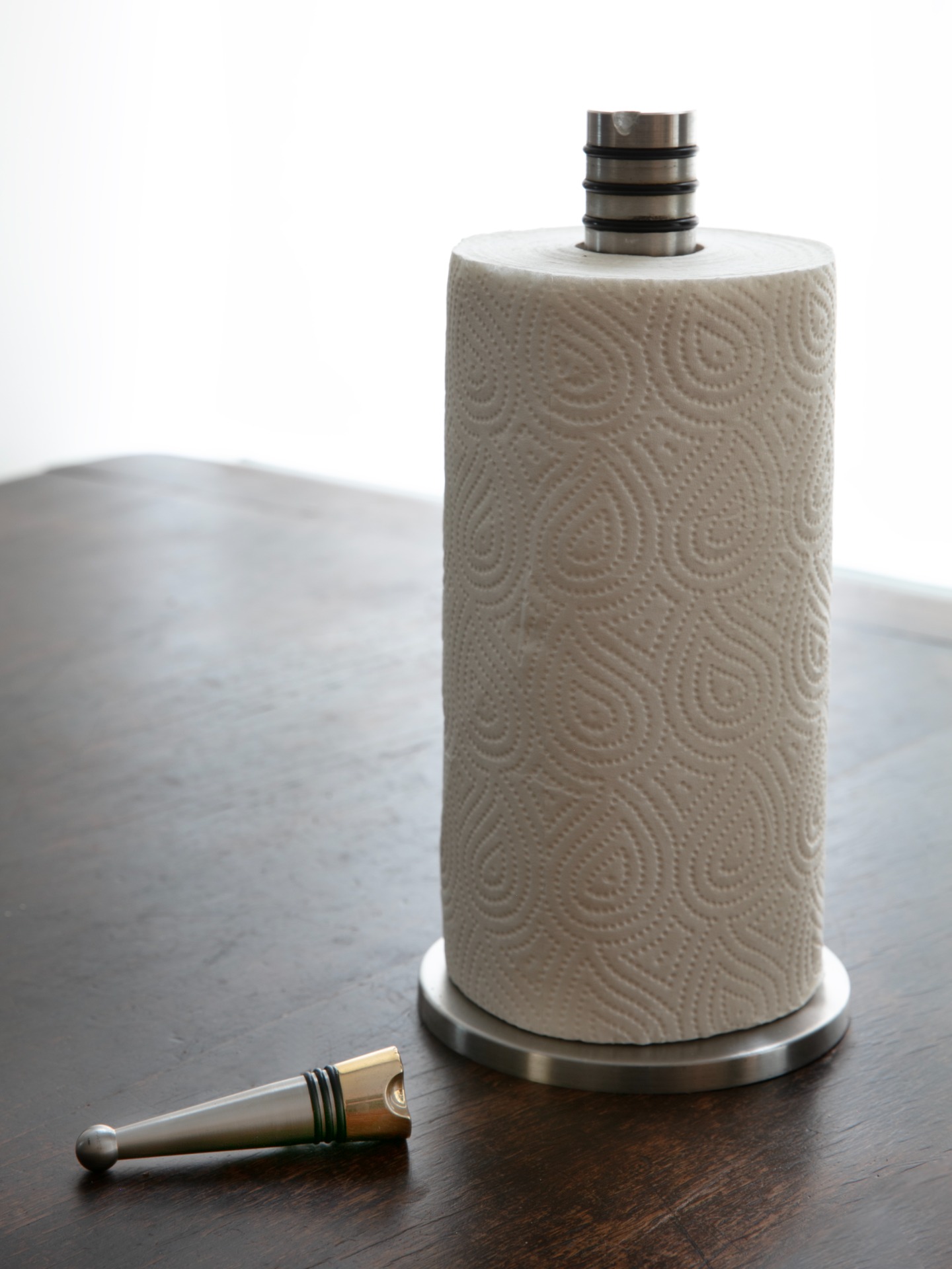 3 Holder til køkkenrulle i børstet stål er et elegant og funktionelt valg til ethvert køkken eller bord. Designet af Paul Stilling, kombinerer stil med praktisk anvendelighed, hvilket gør den til et smukt supplement til din indretning. Den robuste konstruktion sikrer, at holderen står stabilt, takket være den tunge vægt samt neoprenbunden, der forhindrer glidninger.