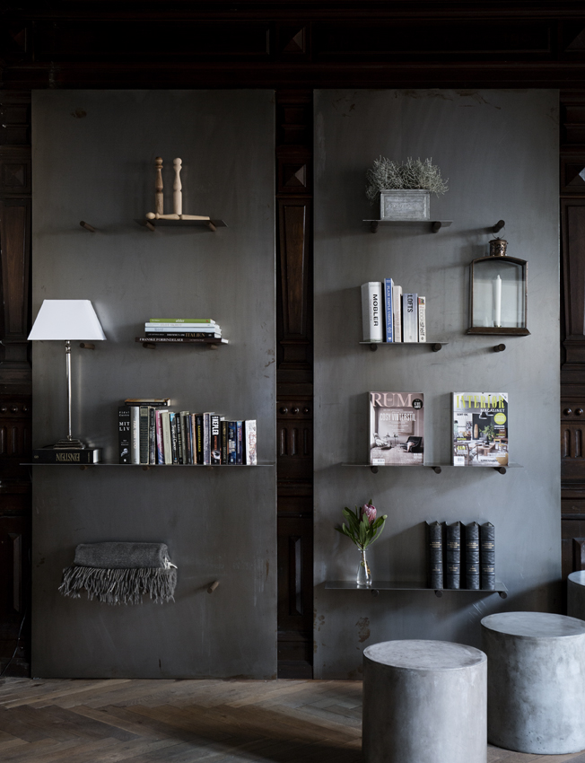Det elegante stativ er lavet i stål og massiv røget eg.