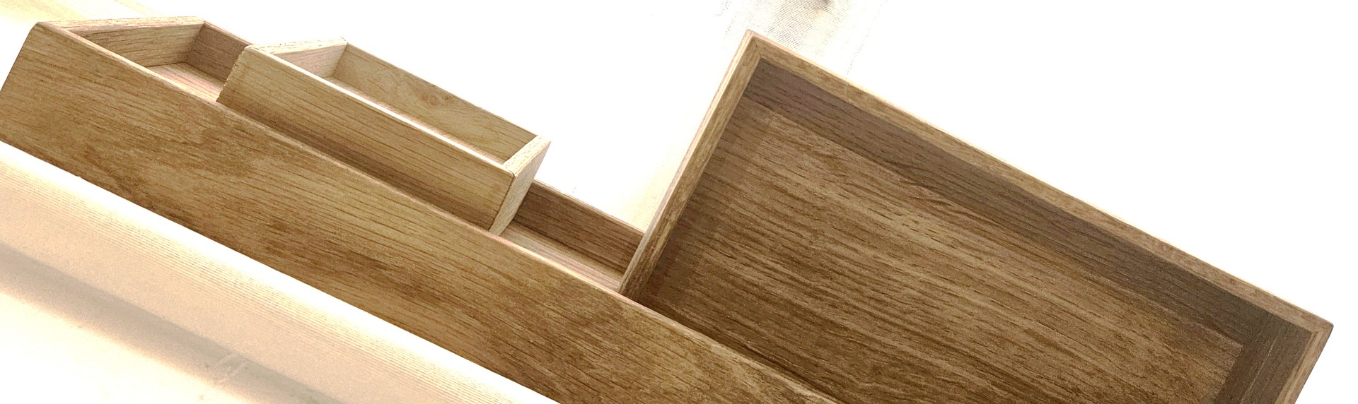 Der medfølger et tre sæt af bokse i samme smukke egetræ som skabet.